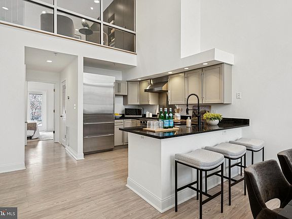 Welcome to an unforgettable urban retreat with private parking in the heart of Logan Circle. Developed in 2005, Unit 3B in the illustrious St. John’s Wood building is a striking two level loft style home that captures the true spirit of contemporary city living. The moment you step inside, you are greeted by soaring ceilings that reach more than twenty feet high and a dramatic wall of glass that envelopes the space with incredible natural light. Sunrises and the evolving cityscape become part of the backdrop of everyday life. The modern open layout flows effortlessly from living to dining to kitchen, creating a setting that feels both expansive and intimate. The newly refreshed kitchen is beautifully appointed with premium appliances including Sub Zero, Viking and Cove, giving you an elevated space to gather with friends or enjoy quiet evenings at home. Ample storage and a walk in pantry offer the kind of practicality discerning buyers appreciate. Completing the main level is a secondary bedroom and full bathroom, providing flexibility for guests, a home office or anything your lifestyle may require. This level also includes access to a private balcony with quiet neighborhood views as well as a dedicated laundry area inside the unit. Upstairs, the lofted primary suite overlooks the living area with a refined sense of style and comfort. Custom closet systems and built-ins bring thoughtful organization, while smart home features and shades from The Shade Store offer privacy and convenience with an elevated finish. Every detail has been designed for modern ease. Two assigned parking spaces with a private rear entrance lead directly into the building and into your home. An electric car charger is already in place to support your forward thinking lifestyle. Building amenities include secure access and a sprawling rooftop deck that adds another extraordinary dimension. With sweeping views of Logan Circle and the Washington DC skyline, it becomes your own front row seat for summer sunsets and holiday fireworks. A perfect place to entertain or unwind while surrounded by the city you love. Life here feels connected and effortless. Step outside and the pulse of the city greets you with award winning dining, stylish boutiques, artful storefronts and cozy coffee spots along the 14th Street corridor. From your living room windows, gaze out to Cardoza Playground, the beloved Shaw Dog Park and the dynamic Shaw Skate Park that feel like an extension of your own outdoor space. Weekend farmers markets, Whole Foods just around the corner, convenient Metro access and endless destinations for culture and entertainment bring enjoyment to every day. This is the very heart of Washington’s trendsetting scene, yet still surrounded by green spaces and a warm sense of community. Everything you love is simply a walk away. Unit 3B brings together architectural drama, thoughtful design and a lifestyle that feels both energizing and easy. A rare offering in one of DC’s most treasured neighborhoods, ready to welcome you home.