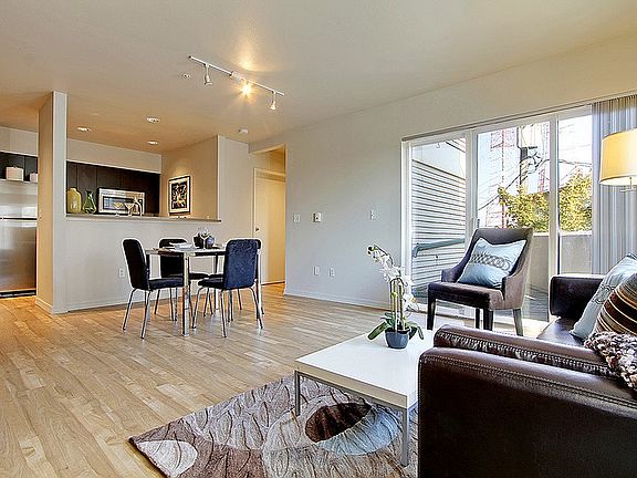 Each unit features sweeping views of Capitol Hill and Downtown Seattle, fully-equipped kitchens, in-unit washer/dryer, private patios