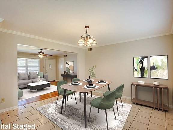 Hardwood floorsLarge dining areaTile throughout the homeHuge pecan tree