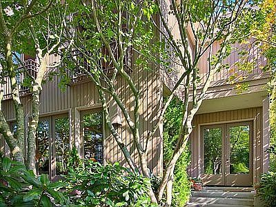 Wonderful Contemporary with flowing open floor plan, soaring ceilings, maple floors, floor-to-ceiling windows and glass doors opening out to private courtyard and numerous balconies & deck. Living room with fireplace, family room off kitchen with fireplace, gorgeous kitchen and desk area, huge master suite with fireplace & lush bath. 2 car garage attached.