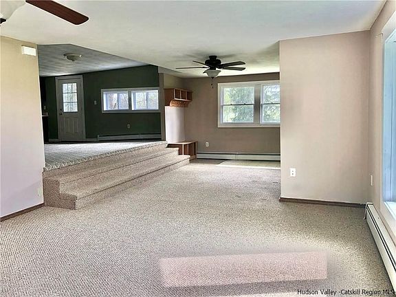 1,590 SQ FT OF HEATED GARAGE/WORKSHOP SPACE, 13' CEILING HEIGHT AND 10' GARAGE ENTRANCE- Three bedroom Raised Ranch in the Wallkill School District on one level acre! The ground level is unfinished heated workshop space with 13' ceilings, shelving, and a 10 ft garage opening! Perfect for landscapers, carpenters, collectors, artists, or hobbyists. The second level offers three bedrooms, 1.5 bathrooms and 1,590 sq ft in the main living space. Open concept kitchen with island, dining area, living room, and deck overlooking a farm. Live upstairs and have your home business downstairs! Partial mountain views. Generator hookup. Great yard space. Possibility of finishing first floor space into accessory apartment- would need town approval. Great location for a home business! Don't miss out on this opportunity!