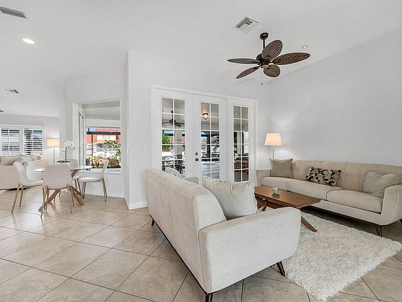 Nestled in a boater's paradise, this turnkey furnished waterfront pool home offers tranquil canal views, Gulf access, and a private dock equipped with two boat lifts and a jet ski lift—perfect for those who love fishing, boating, and exploring the waterways of Marco Island. Designed with an open-concept layout and a split-bedroom floor plan, this three-bedroom, two-bathroom home seamlessly blends indoor and outdoor living. The spacious great room and adjacent dining area open to the lanai through glass sliders, while the formal dining area and living room, both with French doors, provide additional access, all showcasing stunning waterfront views. The chef's kitchen is thoughtfully designed with soft-close cabinetry, granite countertops, a matching backsplash, recessed and under-cabinet lighting, and a large island with a breakfast counter. A pantry with sliding drawers offers ample storage, while modern appliances, including a range, microwave, refrigerator, and dishwasher, enhance functionality. The owner's suite is a private retreat featuring lanai access, a walk-in closet, and an en-suite bath with a dual-sink vanity, soaking tub, and a walk-in shower with glass enclosure and floor-to-ceiling tile. Two guest bedrooms, one with lanai access, share an adjacent bathroom with a walk-in shower. The outdoor living space is designed for relaxation and entertainment, boasting a large covered lanai, picture-frame screen enclosure, and a solar-heated pool. The private dock is fully equipped with two boat lifts and a jet ski lift, making this home a boater's dream. Additional upgrades include tile flooring throughout the main living areas, white plantation shutters, vaulted ceilings, a 2023 plumbing re-pipe, and a 2022 re-roof. A wide brick paver driveway leads to a spacious two-car garage. Located just minutes from Marco Island's pristine beaches, upscale boutiques, fine dining, parks, museums, and golf courses, this home offers the perfect blend of coastal luxury and an active waterfront lifestyle. Whether you enjoy kayaking, paddleboarding, biking, tennis, pickleball, or yoga on the beach, the possibilities for recreation are endless. With the executive airport nearby, effortless travel is always within reach.