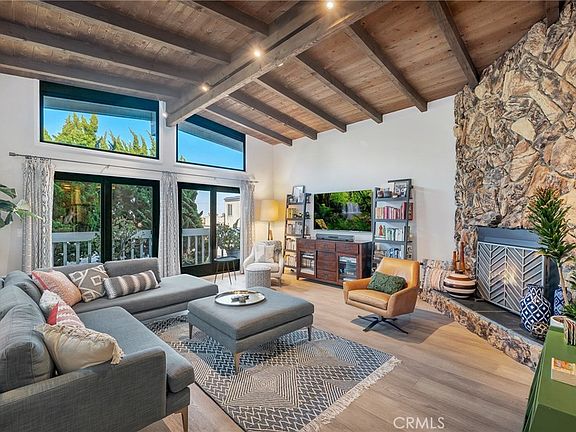 Hurry to this stunningly remodeled home on a highly desirable one way street in the Golden Hills section of Redondo Beach. The current owners have upgraded almost every inch of this house with high end designer finishes and beautiful touches. New exterior paint on stucco and decks as well as new lighting and wood stained garage door invite you to the property with drought resistant mature landscaping. Upon entering you notice the 9” wide plank oak floors and new handrail with wood and cable to accent throughout. Three bedrooms and two and one half baths, all completely redone and designer perfect are included (the half bath was recently added). Downstairs are two of the large bedrooms one with wood slatted feature wall and wall paper, as well as the remodeled hall bath with jetted tub, pendant lights, quartz counters and wall mounted knurled faucet. The laundry is conveniently located across the hall from the lower bedrooms and bath. Upstairs fills with light due to the windows and glass doors (all new energy efficient Milgard fiberglass) and vaulted ceilings. The living room with fireplace is oversized and looks west to the sunny balcony. The kitchen is also fully renovated and a chef’s dream with quartz counters, eat at island with expanded storage on both sides, pantry with pull out wood drawers (all soft close) custom recessed shelving, KitchenAid stainless appliances, glass pendant lighting and wine storage. The powder room features a Restoration Hardware vanity. Down the hall is the primary suite with sophisticated wall paper and custom built in closets with tv nook. The ensuite bath has heated towel rack, large/dual row shower niche and sliding glass enlarged shower. The garage is extra deep and immaculate with recessed lighting, epoxy floors, custom built ins and French cleat walls for tool storage. Finally, the back yard is extremely private due to the new 8 foot wood stained fence and mature juniper trees that are lit up by automatic night lighting. It is finished with artificial grass, perfect for children or pets. Just over 1 mile to Hermosa Beach pier and pier plaza with shops, restaurants and the beach and just down the street from award winning schools including Mira Costa High School.