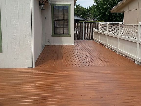 French doors lead to 400 sq. ft. deck. Ceiling fans in living room, den and both bedrooms. Enclosed breezeway between garage and home contains 75 sq. ft. of storage space, with recessed lighting. Electrically powered awning provides ample shade for deck area. In-ground irrigation system for low maintenance yard. Home is close to community fenced pool with social area. - Third room for use as den, office or 3rd bedroom. - Separate laundry room. - 621 square ft. detached garage with pull-down access ladder for storage above garage. Separate sub-panel. Plenty of storage shelves and wall receptacles. Two recessed wall heaters for winter warmth. - Dishwasher, garbage disposal and range/oven provided. - Exterior painted in 2012. - Roof type: Composition. New 30 yr. roof installed summer of 2009 along with new 18? X 50? skylight. - Electric forced-air heating/cooling system. - New hot water heater installed 2013. - New domestic water line installed 2016. - Roof/attic ventilator in garage. - De-icer cables on north-side of roof and de-icer cables in rain gutters.