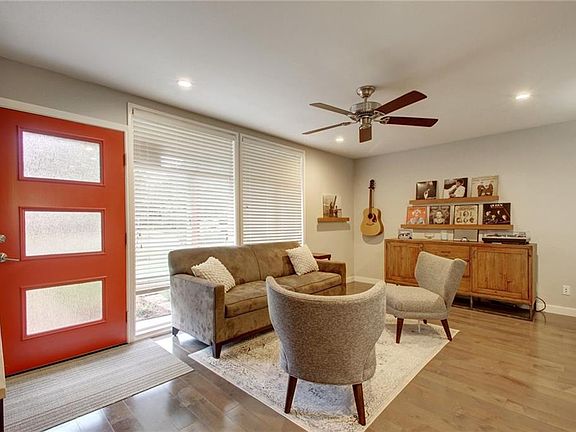 Beautifully updated home in the heart of fantastic Windsor Park. Spacious, bright and open living/dining/kitchen with a large separate family room. Wood floors and tons of natural light from huge windows throughout. All stainless appliances, custom ELFA in bedrooms, laundry and pantry and towel heater in the bathroom. Blocks to Bartholomew park, Hank's, Torchy's, HEB and everything Mueller has to offer. Large deck in the back is great for entertaining with a nice flat lot that has room for an addition.