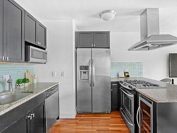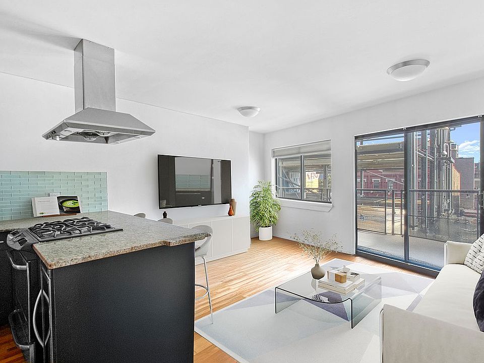 Make this chic 1 bed/1 bath with two private outdoor spaces your new home in Bushwick! Apartment 3D at The L Lofts offers a spacious layout with modern finishes and generous storage throughout. The open living and dining area connects to a sleek kitchen with stainless steel appliances, a wine fridge, dishwasher, and abundant cabinetry. The king-sized bedroom includes a walk-in closet and a second closet just off the bathroom. Outdoor living is at the forefront, featuring a private balcony as well as a deeded rooftop space on the same floor, only steps from your door. The home is complete with a full bath featuring a soaking tub, modern tiling, vanity, and fixtures, along with hardwood floors, central heating and cooling, two walk-in closets, a video intercom, a deeded storage unit, and low monthly carrying costs.The L Lofts is a 15-unit boutique condominium offering a fitness center, laundry facility for residents, and a tax abatement through 2032. Only a short jaunt from the L train and moments from Maria Hernandez Park, this location combines convenience with access to Bushwick's best dining, cafés, and neighborhood amenities. Monthly assessment of $159.13 is in place through 2026 for roof replacement.