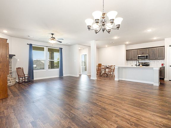 Good natural lightLuxury vinyl floorsCovered patioFormal diningSpa like bathFully fenced backyardOpen to the kitchen
