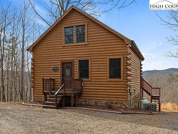 Looking for a weekend mountain getaway or vacation home that offers LONG RANGE VIEWS, SECLUSION, and CONVENIENCE? You’ve found it! Discover your dream log cabin complete with breathtaking sunset views, vaulted ceilings, open floor plan, cozy gas log fireplace, and a fire pit for evening gatherings. This TURNKEY, FURNISHED log home on 10+ ACRES is located in the highly sought-after 3,400 acre, gated Buck Mountain community, a haven for ATV enthusiasts and nature lovers alike. Enjoy mountain living with this open floor plan design. The kitchen offers plenty of workspace and eat-at bar for additional seating. The layout of the great room allows you to enjoy long range mountain views. The primary bedroom is conveniently located on the main level. The loft bedroom accommodates four guests. With accommodations for six people, this home is perfect for creating cherished memories with loved ones. Downstairs offers many opportunities. Convert the basement to finished space for a game/media room, or additional sleeping area for guests. Convenience is always at your doorstep with this central location only 30 minutes from Boone, West Jefferson, and Wilkesboro. Arrive at the gate in just 1 hour from Winston and 1 hour 40 minutes from Charlotte. This is an ideal spot for a weekend retreat or a permanent residence. Long and short-term rentals are allowed. Currently used for short-term rentals when not owner occupied. For the outdoor enthusiast, Buck Mountain offers ATV/UTV Trails, Hiking Trails, Parks, Fishing Pond, Waterfalls, Pavilions, Community Center, and Outdoor Activity Center for concerts and community gatherings. Fiber optic is available. Make sure to experience the virtual tour of this unique mountain home.