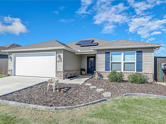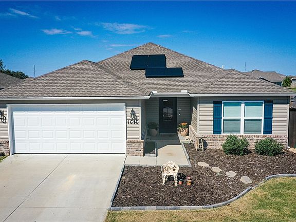 Step inside and imagine coming home to this beautifully upgraded home filled with thoughtful details and energy-efficient features. Enjoy spacious 9-ft ceilings, granite countertops throughout, and a kitchen with upgraded appliances. The living spaces feel bright and inviting with blinds, curtains, and window shades. Outside, relax under the cedar pergola or tend to your garden in the fenced-off area with raised planters. The full wooden privacy fence with dual gates offers plenty of access to your large space to unwind. Additional highlights include upgraded insulation in all walls and attic, a fully insulated garage, and HVAC rigid duct upgrade for comfort and efficiency. Solar panels help keep your monthly bills low! Located just 5 minutes from Bentonville West High School and a short walk to Cornerwoods Park with a new playground, pond, and bike trail. Schedule your showing today!