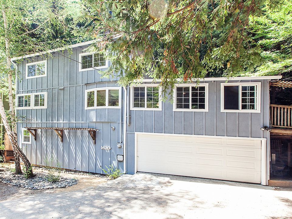 Great commute location with the beautiful serenity of the redwoods! This lovely 2 bedroom, 2 bathroom, PLUS bonus room with separate entrance features, bamboo flooring throughout the living/dining area, Tile in the kitchen , wood burning stove, skylights in both bedrooms for lots of natural light, heated floors in main level bathroom, alarm system and 2 car garage! Minutes to Scotts Valley- shops/restaurants.