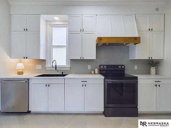 Labor of Love! This beautifully remodeled home blends timeless charm with modern luxury. Boasting tall 10 ft. ceilings, original hardwood floors and an abundance of natural light. Updates in 2024 include plumbing, electrical and electric panel, furnace, water heater and vinyl windows! A cozy enclosed front porch is perfect for morning coffee. Open main floor living space blends living, dining and kitchen. Kitchen updates include new cabinets and countertops, stainless appliances, a custom tile backsplash & a herringbone tiled floor. Main floor features 2 spacious bedrooms & a fully remodeled full bath! 3rd bedroom and primary suite upstairs features recessed lighting, new carpet, and mini split for year around comfort. Large unfinished basement includes a bath and washer/dryer. Fully fenced backyard with 6ft wood privacy fence and new patio. Minutes to downtown Omaha, CHI and Charles Schwab Field and Epply Airport. King Magnet School is 2 blocks away!