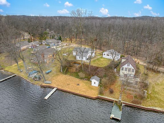 Lakefront home on all-sports Twin Lakes, with beautiful views, great frontage, and abundant storage inside and out. Along with the great hilltop views from the house, also comes over 100' of nice and clear, functional lake frontage. Dock Included. Additional .94 acre lot is also included, total of 1.4 acres , for plenty of additional parking and storage. 2 bedrooms, 2 bathrooms with 1055 sf of living space. 2 living room areas, with plenty of space for entertaining or sleeping additional guests. Large 2 car garage with over 400sf of finished space above, for additional storage or extra room for gatherings. 2 large storage sheds with electric! Electric at the lake as well. Updated mechanicals, including on demand water heater, Main Floor Laundry.