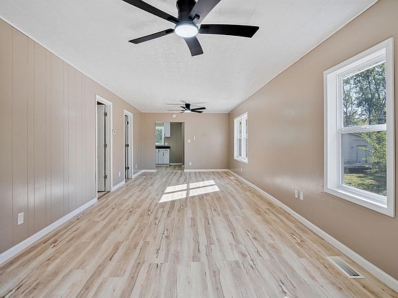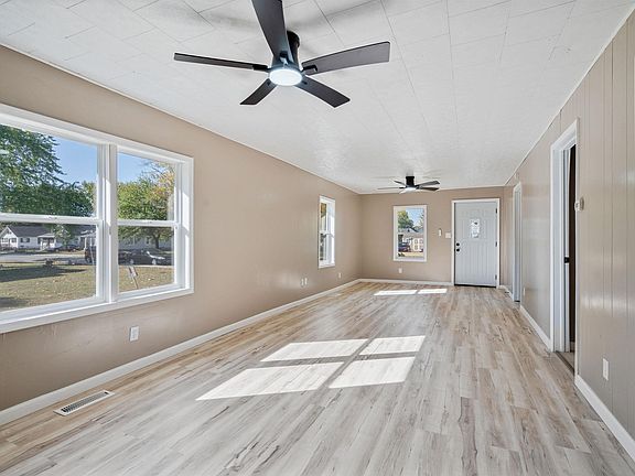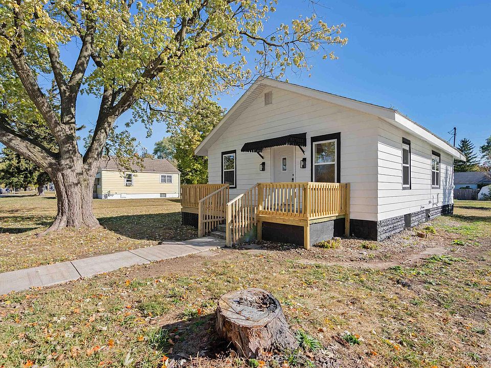 Charming move-in-ready home ready for a new owner. This beautifully updated 2-bed, 1-bath home features a bright, open living area with new vinyl plank flooring and modern lighting. The kitchen offers new white cabinetry, sleek black countertops, and stainless steel appliances. The bathroom has been fully updated with contemporary fixtures and finishes. Enjoy a covered front entry, freshly updated porch, spacious yard, and full basement for extra storage.