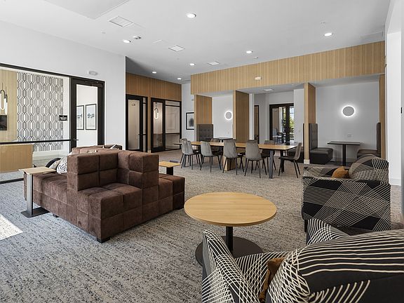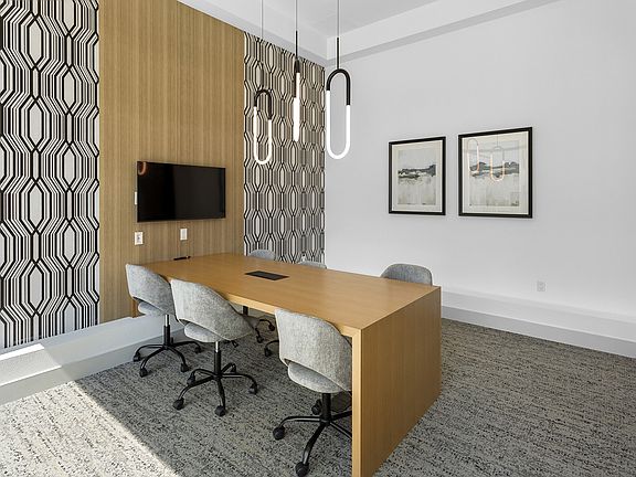 - Exterior features: Business Center, Carports and garages available, Dens in select units, Electronic parcel locker system, Guest Room, Kitchen islands*, Media Room, On-Site Maintenance, On-Site Management, Oversized closets, Picnic Area, Private balconies and patios, Quartz countertops, Resident coffee bar, Soaring 9-foot ceilings, Stainless steel appliances, Wood-style flooring, Yoga/Pilates Studio