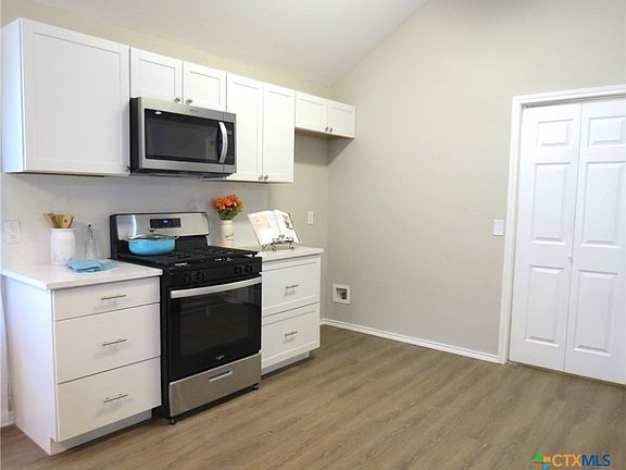 Completely updated and beautiful. New kitchen cabinets with quartz counters and quartz slab backsplash. New stainless appliances and a breakfast bar. New light fixtures. New door hardware. New faux wood flooring in the living area, dining, and kitchen. New carpet in the bedrooms. High ceilings. Inviting fireplace. Fresh paint inside and out. Primary bath offers a soaking tub, separate shower, and double vanity. New 2 inch blinds and window treatments are included. New architectural shingle roof 2025. New AC and heat system 2025.