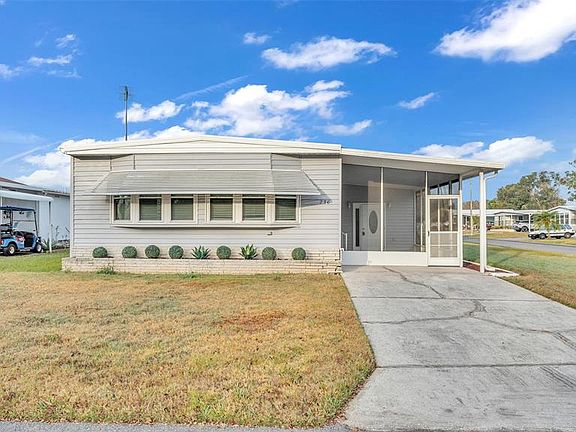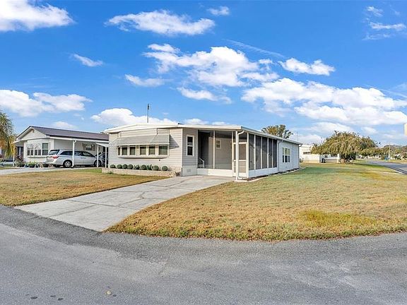 One or more photo(s) has been virtually staged. Welcome to Citrus Woods Estates, a highly desirable 55+ community where you own the land—NO lot rent! This beautifully updated corner-lot home is ideally located right behind the clubhouse, providing easy access to the community's fantastic amenities. With two driveways, a carport, and a screened front porch, this home offers both convenience and comfort. Inside, you’ll find a spacious and well-designed layout, featuring a large dining area, a cozy breakfast nook with built-in cabinetry, and a generous living room perfect for entertaining. The modern kitchen has been tastefully updated with newer cabinets, countertops, and appliances, plus an additional space ideal for a coffee bar. Both bedrooms include walk-in closets, offering plenty of storage, while the hall bath boasts updated cabinetry, countertops, and extra storage space. This home also includes an air-conditioned sunroom and a 9x3 air-conditioned storage room, providing additional functional space. Recent updates include ALL windows replaced in 2020, ceiling fans throughout, and stylish wood-look plank flooring, enhancing both comfort and aesthetics. A/C system replaced in 2018. As part of Citrus Woods Estates, residents enjoy low HOA fees with access to fantastic amenities, including a heated swimming pool, shuffleboard courts, and a clubhouse with a rec room, library, and a variety of scheduled activities. Home rentals are permitted after one year, making this a great option for seasonal residents or long-term homeowners. Boats, RVs, and motorhomes are allowed under carports, adding to the flexibility of the community. This home is also in a prime location, just minutes from restaurants, shopping, medical offices, and major Florida attractions like Walt Disney World and Legoland. Situated between Orlando International Airport (MCO) and Tampa International Airport (TPA), travel is a breeze. Plus, Florida’s Gulf and Atlantic beaches are just a short drive away, perfect for a quick getaway. Don’t miss this incredible opportunity to own a well-maintained home in an active 55+ community with NO lot rent! Schedule your showing today!