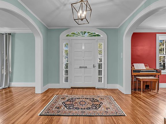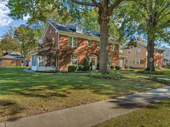 From the street this 2.5 story Colonial looks starched and staid. Like the home of a bank president from another century, which it was. But walk through the front door and you will find it is an eye-pleasing mix of old and new, casual and formal, adaptable to any lifestyle. It was built in the days before computers and social media when families invited friends and neighbors over for dinner, playing cards and listening to the radio. With almost 2,300 square feet on the main level you can easily host Thanksgiving for the extended family with adults in the dining room and kids in the living room or at the eat-in kitchen table. Or throw a Super Bowl party for the entire neighborhood in the 27' x 26' family room which has an outside entrance and mini kitchen. The updated main kitchen includes a butler's pantry and laundry in a separate room. Catch up on your reading in the south side sunroom or enjoy the north side screened porch in mild weather. On the second floor there are the primary bedroom with a fireplace and en-suite bath plus another two bedrooms, one of which is a two-room package deal. Up the steep winding stairs to the third floor you will find two additional bedrooms, loads of storage and a full bath with a charming tiny tub. Move outside to discover a delightful little garden shed (or playhouse) plus additional parking beside the detached 2-car garage. Old meets new with oak floors, glass knobs, arched doorways, back staircase between floors and updated electric, HVAC, radon mitigation and so much more. Exceptional in so many ways.