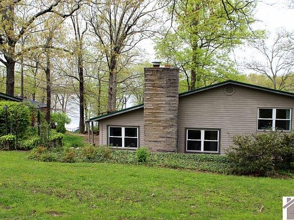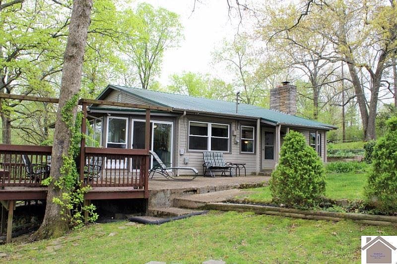 KY LAKE WATERFRONT WITH PRIVATE DOCK! DEEP WATER year round - Fully furnished - Many new updates, large Deck for entertaining, detached 2-Car Garage and an impressive new 32 x 38 Covered Dock with 2 Slips. One is 10 ft wide and the other is 12 ft wide along with a Swim Platform. The Dock has Lights, Electricity and Water. Also included is a HydroHoist 5000 boat lift. Drive your golf cart right to the dock. You cannot beat this price on 1.2 acres.