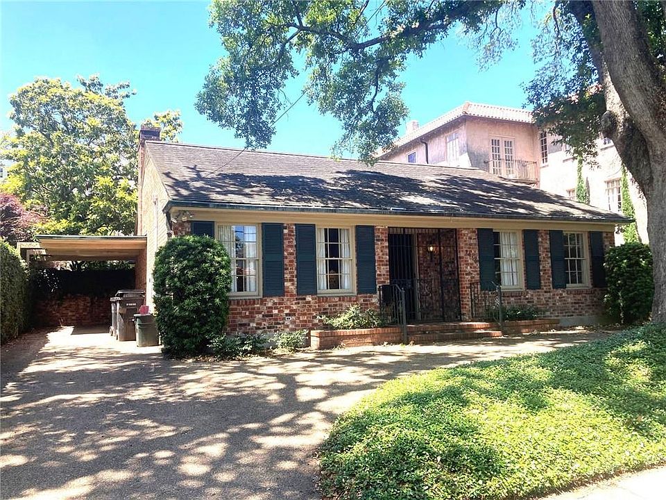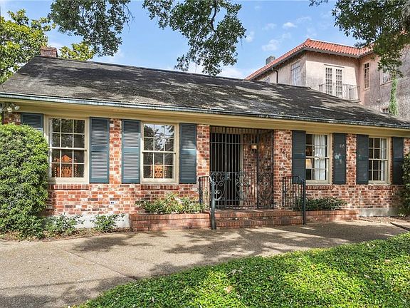One half block off St. Charles Ave in demand location. One story brick has 9' ceilings, crown molding. 4 Beds, 3 1/2 Baths. Fabulous family room has built in bookcases, wet bar, wood burning fireplace, ornate antique wood mantle & French windows overlooking slate patio. Open kitchen-breakfast room. Circular drive, driveway and carport.