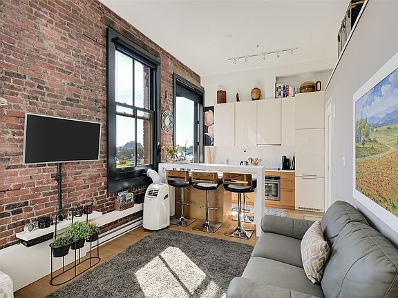 Original exposed brickOversized windowsBuilt-in wall bedIntegrated storageQuartz countertopsHidden-drawer dishwasherIn-suite washer and dryer