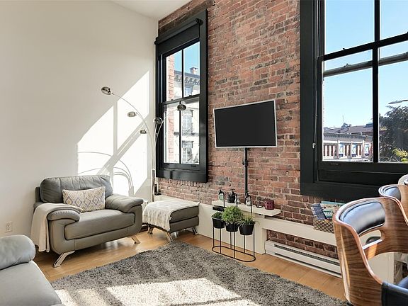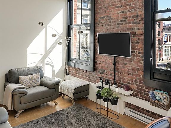 Experience urban living in the iconic Janion building, where heritage charm meets modern style. This bright SOUTH-FACING 2 bedroom features original exposed brick, oversized windows, and views of the bustling City, and Inner Harbour. Designed with efficiency in mind, it offers a built-in wall bed, integrated storage, engineered oak flooring, quartz countertops, a hidden-drawer dishwasher, refrigerator, freezer, and in-suite washer & dryer. Enjoy in-floor heating in the bathroom for added comfort. The Janion boasts premier amenities: rooftop terrace with BBQ and kitchen, fitness centre, conference room, bike/kayak storage, and internal beach access. Located in the heart of Downtown Victoria, steps to shops, dining, and the waterfront. Ideal for students, digital nomads, or snowbirds as it's fully-furnished, this New York style condo is your gateway to the best of the city. Location, lifestyle, and iconic views—this is modern living at its finest.