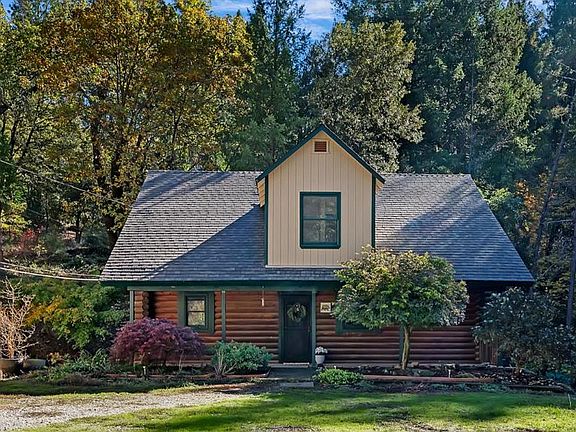 Tucked at the end of a peaceful road in Swansboro, this charming log home offers total privacy and serene mountain living. A pluot fruit tree-lined driveway welcomes you to this 2-bedroom, 1.5-bath retreat surrounded by towering pines and natural beauty. The detached oversized 4-car garage features a spacious flex room above, ideal for a home office, guest suite, or creative space. Inside, you'll find warm updated log interiors, a cozy wood-burning stove, and a charming country kitchen with granite counters and shaker cabinetry. Enjoy morning coffee on the covered front porch or stargazing on quiet evenings. Swansboro Country residents have access to private lakes, a community airstrip, yet this home is not in the HOA!! Plus it's just a short drive from historic Placerville and when the bridge is completed it'll be even better! Whether you're escaping the city, seeking a rental opportunity, or settling into a simpler lifestyle, this property is your private woodland haven with character, privacy and charm around every corner.