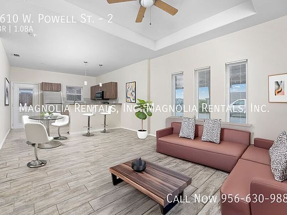 Welcome to 1610 W. Powell St, a premier living destination in Edinburg, TX. This one-bedroom, one-bathroom apartment offers a modern lifestyle with its open floor plan, high ceilings, and hardwood floors. The kitchen is equipped with stainless steel appliances, including a refrigerator, microwave, and stove/oven. A washer and dryer are also included for your convenience. The master bath is adorned with modern fixtures, and the bedroom features a spacious walk-in closet. This gated property offers 24/7 maintenance support, ensuring a hassle-free living experience. The rent includes trash removal and lawn care, while the tenant is responsible for electric and water. This pet-friendly community welcomes pets, subject to breed restrictions. Please note that this is a no-smoking property. A 12-month lease is required. Experience the best of Edinburg living at 1610 W. Powell St.