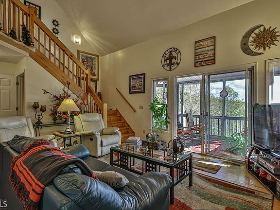 Enjoy long-range views year round. Newly remodeled kitchen with new appliances, granite counter top and new flooring. Living room has fireplace that is being used with gas but can be used as wood burning. Large master on main offers mountain view with garden tub and separate shower. Master on upper level as well as large loft. Screen porch and open deck located off living room is ideal for seasonal enjoyment. Lower level offers den, full bath, two bedrooms and kitchenette. Patio, two storage buildings for storing seasonal items and sun deck. This property is located on two lots. Nearby fishing, both lake and trout, hiking, kaiaking, biking, whitewater rafting, hunting and much more. This is a great place to call home.