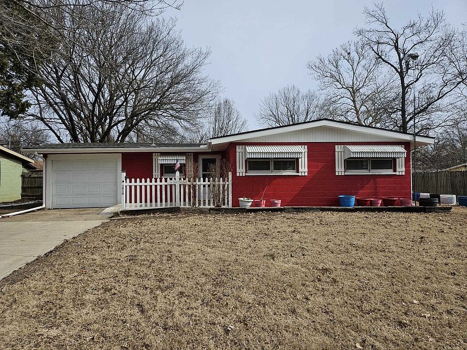 Welcome! This low maintenance, well cared for home sits on a dead-end street, so traffic is minimal. You will find a nice sized living/dining combo with French doors to back yard, kitchen with refrigerator and stove hookups for gas or electric. There are 3 bedrooms with nice sized closets, bath with tub/shower combo and laundry/mechanical room in hallway. Totally fenced yard is a gardener's delight with 2 storage sheds. One car garage has opener, storage and a door to the backyard as well. Recent upgrades: freshly painted interior, new roof in October 2024 plus updated breaker box, outlets and light fixtures in January 2025. Don't miss out on this gem, call me for your private showing today!