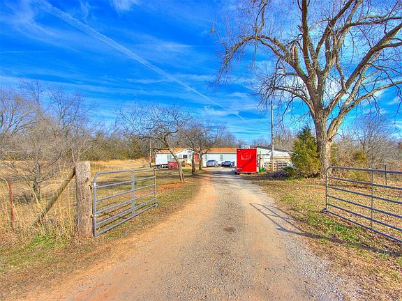This amazing property is in good shape, sits on 6.34 acres, backs up to a creek, just minutes from OKC, and has a storm shelter. With 2 storage sheds (that could be turned into "She-Sheds" or "Man-Caves"), and 1,836 sq ft., this gem could be YOUR piece of the American Dream. Have your owns chickens or goats. Plant a garden of vegetables or wild flowers. This property could be everything you've ever dreamt. At this price, you will want to JUMP on this one!
