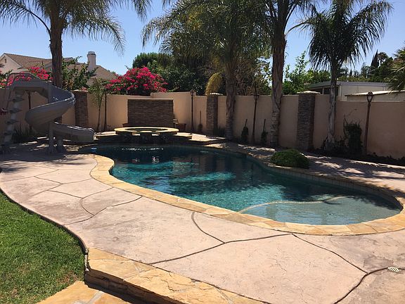 This home boasts pride of ownership with a custom built pool and spa, updated kitchen with granite countertops, remodeled bathrooms, crown molding, recessed lighting, and much more. This newer 1988 built home has been well taken care of and is located in a quiet cul-de-sac which is perfect for any family. Enjoy outdoor entertaining on the custom BBQ and Bar in the backyard, and stay cool in the shade of the patio. Too much good stuff to mention, come and see. This one will go fast!