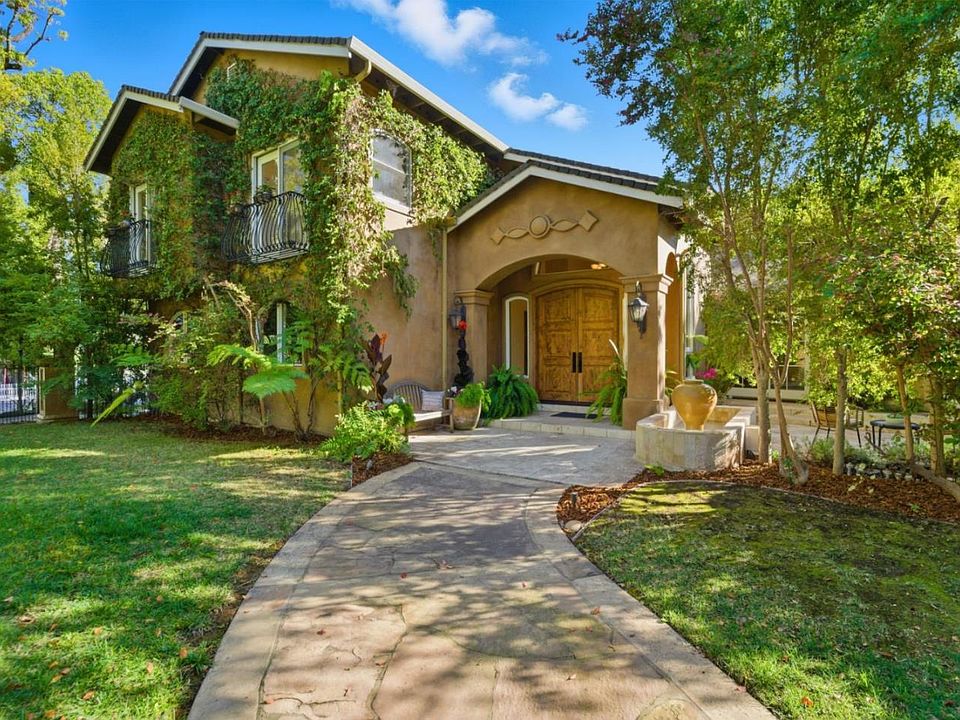 Relish the Napa-inspired charm of this stunning home rebuilt in 2005 & remodeled in 2011. A dramatic entrance & serene fountain welcome you into a space defined by volume ceilings, stone & hard wood floors, breakfast bar plus a family dining table for open concept living. The chef's kitchen has plenty of counter space, a new Viking 36" gas range & a picture window. The expansive living room has multiple French doors adding elegance & a peek into the beautifully landscaped yard which also has a tranquil fountain. Enjoy room for all with 6 bedrooms & 5 baths plus an office with separate entrance. Two primary suites are situated on the first floor allowing this to be a forever home. The main primary suite has French doors that open to a cozy patio retreat for morning coffee or a relaxing glass of wine while fountain water trickles in the background. Primary bedroom has a walk in closet, two sinks plus a huge shower & separate soaking tub. The second primary offers versatility as a guest retreat or additional family room. Upstairs are 3 bedrooms, two baths & a family room. Enjoy the exquisite yard which is perfect for entertaining, gardening or quiet relaxation under the wisteria-covered pergola. This is a one of a kind home in highly prized Los Gatos Blossom Manor.