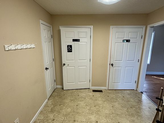 Furnished event venue facility. Interior features a 50x40 auditorum/main hosting room with chair and table storage in the front.Audio hookups available in the main room. Full kitchen with chair storage and cabinets. Main level features two public restroomsand a full private bathroom attached to an office/dressing room. Closet storage. Also features an upstairs loft apartment with a fullbathroom. Large lot with outside storage buildings. Front paved car port fully covered with covered back patio.
