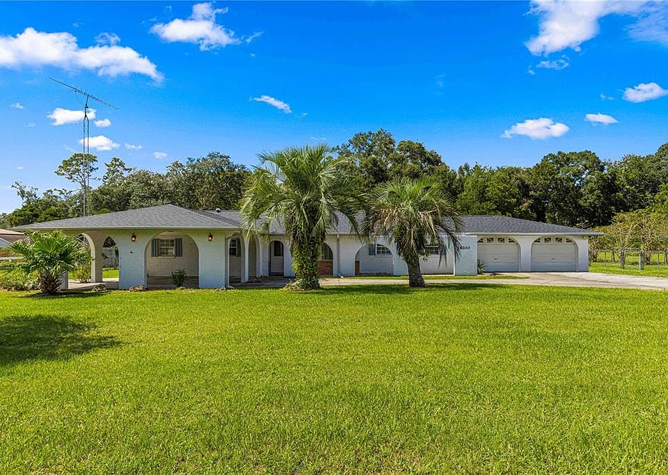 Welcome to this charming home on just over an acre located in Vermillion Estates! The home features a brand new 2024 roof and exudes character and warmth, with opportunities to modernize and personalize to your taste. The cozy kitchen features a wonderful breakfast bar, perfect for enjoying company while cooking up your favorite meal, and it's open to the very light and bright dining room featuring french doors and beautiful, wood trim! Endless possibilities with the great room/flex space to create either an entertainment room or den for you and your family and friends to enjoy! Enjoy the uniqueness of it from the arches to the screened in two car garage giving you a cool breeze, a and view into your backyard oasis! Featuring plenty of storage for your toys and boats, ensuring that your adventurous spirit is always catered for. The expansive lot provides a serene backdrop perfect for entertaining family and friends, with room for gardens, outdoor activities, or even a potential pool. Discover the perfect blend of tranquility and convenience with easy access to local amenities, while savoring the privacy and space that this home affords. Your ideal lifestyle starts here—seize the chance to make it your own!