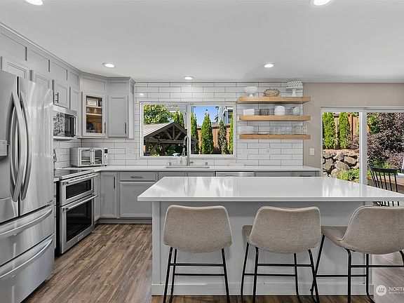 Welcome to your dream home! This exquisite 4-bedroom, 3-bath residence seamlessly blends luxury and comfort, located only a few short steps across the quiet street from a beautiful park. Enter through the grand entry great room with vaulted ceilings, leading to spacious living areas. The fully remodeled kitchen features quartz countertops and a custom wine bar, perfect for entertaining. The massive primary suite offers vaulted ceilings, luxurious his and hers walk-in closets, and a spa-like ensuite bathroom. Each secondary bedroom also includes a walk-in closet. Enjoy beautifully remodeled bathrooms and LVP flooring throughout. The hardscaped backyard, complete with manicured landscaping and irrigation, is ideal for outdoor living.