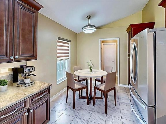 One or more photo(s) has been virtually staged. --Peaceful Cul-de-Sac Home with Paid-Off Solar & Private Lake Access-- Welcome to John’s Lake Estates, a quiet, tree-lined community known for its private boat ramp access to John’s Lake and convenient location close to everything. Tucked away on a tranquil cul-de-sac, this beautifully updated home sits on over half an acre of shaded property, offering the kind of space and serenity that’s hard to find. From the moment you pull up, you’ll notice the mature oak trees and the soft, dappled sunlight that fill the yard. The fully paid-off solar system means lower electric bills and energy efficiency from day one. It’s the perfect blend of comfort and sustainability. The outdoor living space is what truly sets this home apart. The large covered patio features a built-in BBQ kitchen with a grill, refrigerator, sound system, and plenty of bar seating — perfect for cookouts or casual evenings with friends. As night falls, custom LED lighting adds a warm glow while you relax in the oversized hammock and listen to the breeze through the trees. Inside, you’ll find an open, airy layout with vaulted ceilings, tons of natural light, and luxury vinyl plank flooring throughout — even in the bedrooms. The remodeled kitchen is a showstopper, featuring soft-close cabinets, crown molding, stone countertops with wireless charging, a glass tile backsplash, and stainless steel appliances including a double oven range and multi-drawer refrigerator. A dry bar with glass cabinets and modern pendant lighting make this space ideal for everyday living or entertaining. The primary suite offers a peaceful retreat with fresh paint, a walk-in closet, and an updated ensuite bath with a soaking tub and glass walk-in shower. Three additional bedrooms and a second full bath provide plenty of room for family or guests. With a newer roof and HVAC (2015), water heater (2021), and smart thermostat, the big updates are already taken care of — all you have to do is move in. This home captures what Florida living is all about: space, nature, and comfort, just moments from the lake. Whether you’re boating, barbecuing, or just unwinding in the shade, this is the kind of place that feels like home the moment you arrive.