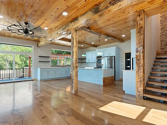 The Cliff House is an architectural short term rental masterpiece! This new construction home is perched just 10 minutes from Downtown Rogers, offering breathtaking lake views from every room. Designed for the best of modern living, the open-concept floor plan features soaring ceilings, custom tilework, a floating metal staircase, and a chef’s kitchen built for entertaining. A fireplace connects indoor and outdoor spaces. Step outside to enjoy a full-length deck, covered lounge, multiple patios, and a custom stone firepit, all positioned to capture the lake panorama. Amenities include a private wine and cigar room with a vault door and exposed cave, blending sophistication with originality. A geothermal system ensures efficient and sustainable comfort year-round. With unrivaled views, striking design, and an exceptional location near public boat launches, the Cliff House is a rare opportunity to own one of the most unique homes in Northwest Arkansas. The second parcel is also listed separately under MLS #1321493