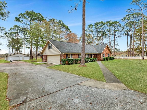 Immaculate ranch-style brick home situated on a spacious 1.8 acre lot! Plenty of space for cars & hobby toys with a 3-car detached workshop/garage boasting 220 electricity PLUS a 2-car garage attached to home and circular driveway. Interior of home features Living Room w/fireplace, Sunroom, upstairs Bonus Room, 3BR's, and fully equipped kitchen. The primary bedroom is truly a retreat, occupying its own wing of the house. It boasts a generously sized bedroom, an adjacent office room, and dual walk-in closets for all your storage needs. The ensuite spacious bathroom features dual sinks, a tub, and a separate shower. Covered back porch offers Hot Tub and plenty of room for seating. UTILITIES: Okefenokee Power, Well/Septic, 2021 installed new drain field lines, Brantley Telephone for high speed internet, Termite Bond with Yates Astro, HVAC 7 years old. Water Heater 5 yrs old. Water purification system 5 yrs old. Roof 10 yrs.