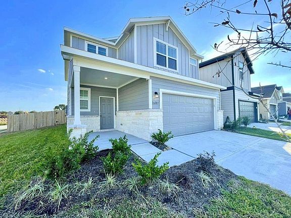 Beautiful, MOVE-IN Ready 2-story 4/2.5/2 home is located on a CORNER LOT W/Green belt views. NO Backyard neighbors! Extended front porch, 2 story high ceiling grand entry, 1 bedroom/home office and full bath on first floor. Spacious formal living W/Vinyl plank Flooring. Kitchen upgraded W/42" cabinets, granite counter-tops, Stainless Steel appliances. Stainless Steel side-by-side Fridge is INCLUDED! Over-sized Primary suite, 2 secondary bdrm and Large game-room are on 2nd floor. Big backyard W/Extended covered porch, concrete floor for your family gathering. With its premier location on HWY 6 near Copperfield, Kingfield provides residents with a rare opportunity of quality new home construction in an established, sought-after area. Take advantage of being within walking distance to the popular retail and restaurants of the Copperwood Village shopping center as well as the convenience of being between the 2 major HWY 290 and the Katy Freeway.