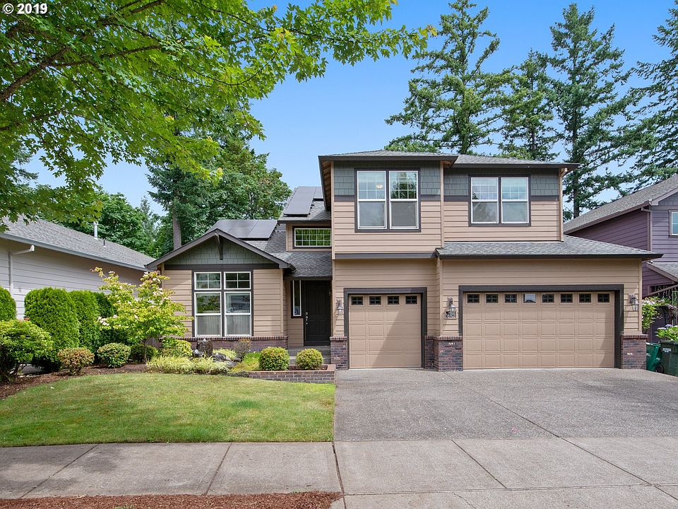 Wonderful Craftsman on greenbelt. Move in ready! Enjoy the views off two spacious decks. Light and bright! Kitchen with cherry cabinets, hardwood floors, slab granite & gas appl. Spacious nook and family room with fireplace. Fantastic master suite with sitting room and walk-in closet. Lower level boasts a massive bonus room, 2 bedrooms, bath and lots of storage. A/C, central vac, solar panels. 3 car garage! MUST SEE!