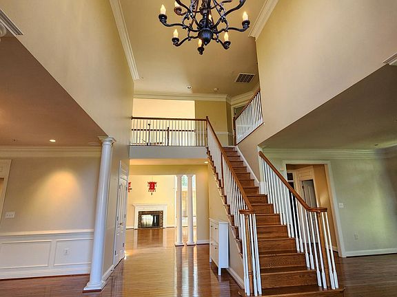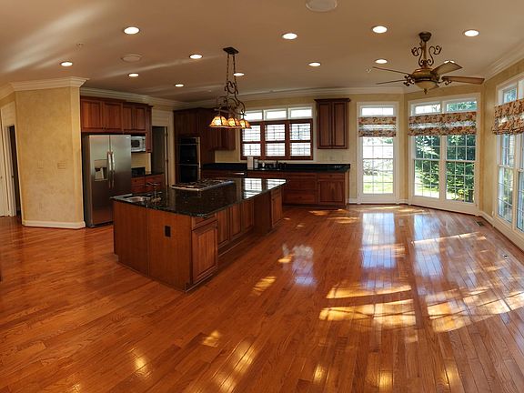 This spectacular home -- with over 7,400 finished square feet of high-end finishes and extra upgrades. Stone facade with gorgeous architectural details and upgrades throughout the three finished levels. From the soaring ceilings and detailed molding in the two-story foyer and great room, to the gleaming granite and stainless-steel kitchen with a huge center island, and a main-level home office with cherry built-ins, this home offers all the bells & whistles imaginable. The upper level offers an enormous owner's suite with a new designer bath with a stained-glass door entry, plus three additional bedrooms including a junior suite with an au-suite bath. The walkout lower level is expansive with open spaces for entertaining, a fifth bedroom, fourth full bath and a state-of-the-art fitness room. There's plenty of additional living & recreational spaces down there, as well as access to the trees-backed yard and the deck above.