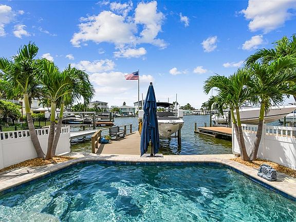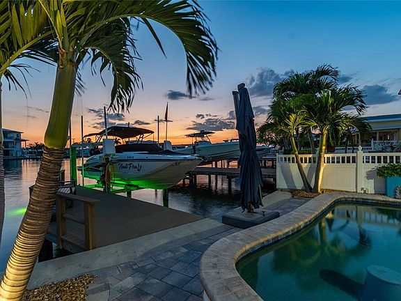 HUGE $$ PRICE IMPROVEMENT!!! Coastal waterfront luxury home just steps from Redington Beach | 3,000-plus square feet | fully renovated (2025). This stunningly renovated, move-in-ready three-bedroom, three-bath waterfront home blends luxury, space and functionality with thoughtful coastal vibe upgrades. Featuring an open-concept layout, designer kitchen, expansive living spaces, custom built-in shelving, and a private upstairs primary retreat with panoramic water views. Enjoy a heated saltwater pool, outdoor kitchen-ready gas setup, and composite dock with 7,000-pound lift. Major upgrades include full downstairs reno (2025) plus upstairs addition (2016). Pavers, retaining seawall, saltwater pool, gas lines (2017–2018.) New entry doors, roof (2021–2023). New Trane HVACs, floors, pool heater and pump (2024–2025). Custom closets (2022). Natural gas. Enter the spacious great room, featuring lots of natural sunlight, plantation shutters, barn doors and wood-accented ceilings. The open-concept kitchen boasts quartz countertops, stainless appliances, a large island, exposed beams and designer tile. A bright, expansive family room offers flexible living and dining space with abundant natural light and a fireplace for ambiance. The main level includes two full baths and two guest bedrooms—one with a renovated en-suite bath—plus a cozy den with a custom bar and wine refrigerator. A large bonus room can serve as a fourth bedroom, home office, gym, storage or convertible garage. A beautifully updated interior laundry room and third full bath round out the first floor. Upstairs, the luxurious primary suite features vaulted ceilings, wood beam accents and a four-panel sliding glass door overlooking the water. The spa-like en suite includes a spacious walk-in shower, jetted tub, private water closet and modern double vanity. Plenty of space in the custom walk-in closet too! The primary suite opens to a gigantic rooftop deck with panoramic views and lots of expansion potential to increase interior or exterior space. Add more bedrooms or finish out for a glorious panoramic rooftop deck. The backyard is an entertainer’s dream with a heated saltwater pool, extensive paver decking, a large motorized retractable awing provides shade to relax poolside in the heat of the day, and gas connections for grills and equipment. The composite dock includes water, power, and a 7,000-pound lift for boating enthusiasts. All this just a short distance to the powdery sands of Redington Beach, minutes to fine dining, shopping, downtown St Pete and only 40 minutes to Tampa International Airport. Whether you’re looking for a full-time residence or luxury vacation home, this turnkey property delivers coastal living at its finest.