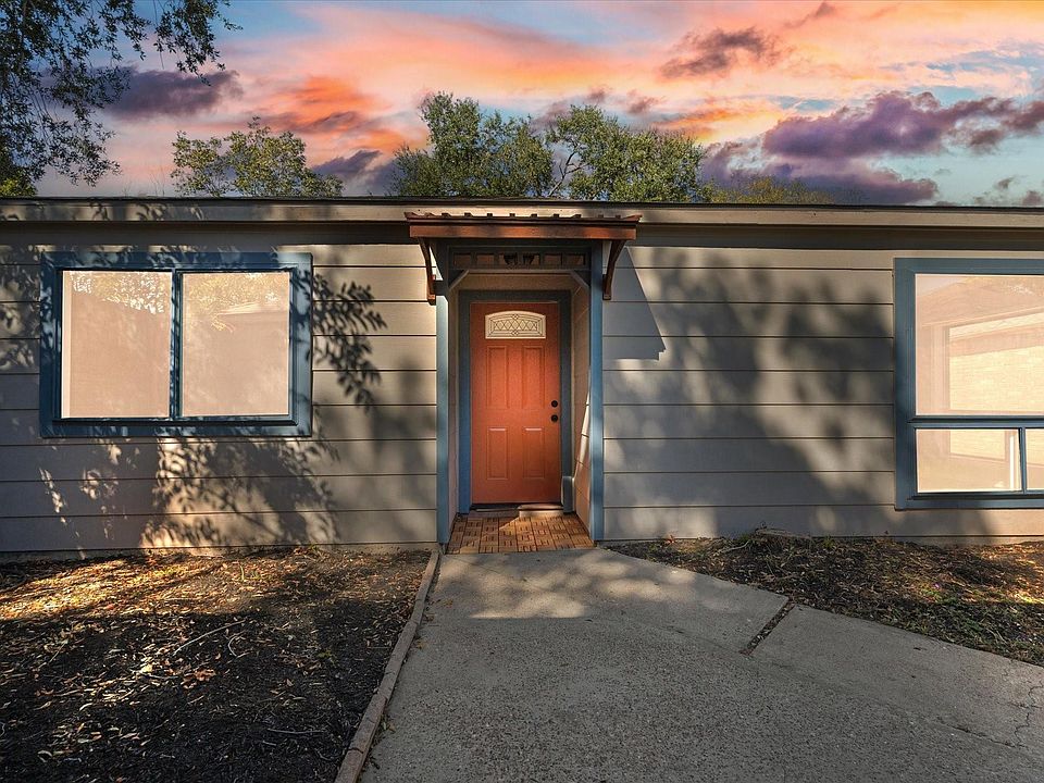 Step into an enchanted oasis behind gated courtyard with brick walls, a private patio and deck. Large windows with tons of natural light streaming in. Home's recent renovations include foundation correction, a full roof replacement with class 3 shingles, new flooring, updated itching including oven/stove, microwave, ceiling fans, hardware, knobs, interior paint, AC unit is 3 years old and PEX plumbing throughout. The primary bedroom has a jetted tub and large walk in closet. Just 1 minute from the neighborhood amenities which include a pool, sprawling fields, and playground. Living Room has a beautiful fireplace and floorpan is very private and functional. The garage has room for storage and automatic garage door opener.