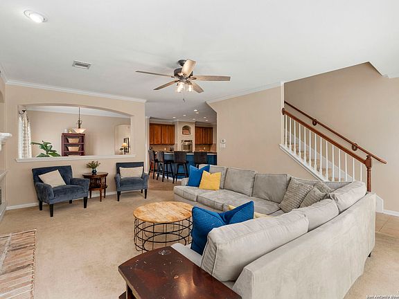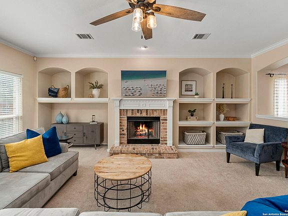Welcome to the highly sought-after gated community of Sonoma Ranch! This beautiful 4-bedroom, 3.5-bath home offers a spacious open floor plan designed for both comfort and entertaining. The island kitchen is a chef's delight, featuring rich wood cabinetry, double ovens, granite countertops, and abundant storage and workspace. It overlooks the breakfast area and family room, where a charming brick gas fireplace serves as the perfect gathering spot. A formal dining room and additional living area provide extra space for family and friends to enjoy. The primary suite is conveniently located downstairs and includes a luxurious en suite bath with dual vanities, a separate shower, and a soaking tub. Two additional bedrooms on the main level offer flexibility for family or guests. Upstairs, you'll find an oversized secondary bedroom complete with its own full bath-an ideal space for guests, a media room, or a private retreat. Step outside to a peaceful backyard with a relaxing patio, perfect for enjoying quiet evenings outdoors. Residents of Sonoma Ranch enjoy resort-style amenities including two pools, a clubhouse, tennis courts, sand volleyball, and basketball courts. Great location with quick access to Loop 1604, I-10.