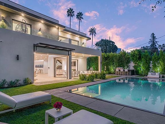 Modern Luxury Home for Rent in Encino This stunning contemporary masterpiece, built in 2017, offers over 5,000 sq. ft. of sophisticated living space with unparalleled attention to detail. Boasting 5 en-suite bedrooms, custom finishes, and exquisite design elements, this home embodies modern elegance. The expansive open floor plan and floor-to-ceiling glass sliders seamlessly blend indoor and outdoor spaces. The sleek chef's kitchen features a waterfall stone island, top-of-the-line stainless steel appliances, and an 84-bottle wine cellar. A floating staircase leads to the second-floor atrium, where you'll find a covered outdoor patio with a cozy fireplace and glass walls, perfect for relaxation or entertaining. The private backyard is an entertainer's paradise, complete with a zero-edge pool, spa, outdoor BBQ area, and lush designer landscaping. The grand primary suite is a serene retreat, featuring its own fireplace, two private balconies with treetop views, a spa-like bathroom with dual vanities, a soaking tub, and a spacious walk-in closet. A spacious room downstairs for an office or a guest room. Furniture options include the primary bedroom and one additional bedroom, as well as a Restoration Hardware dining table with 2 extensions, seatings, office furniture, and outdoor furnishings. Smart home system with integrated alarm, sound, and cameras Solar system installed, keeping power bills impressively low at $40 $60/month Top-rated schools in the area Owner pays for pool and gardening and renters are responsible for water, gas and power bills. No indoor smoking.