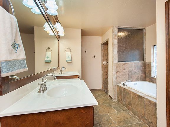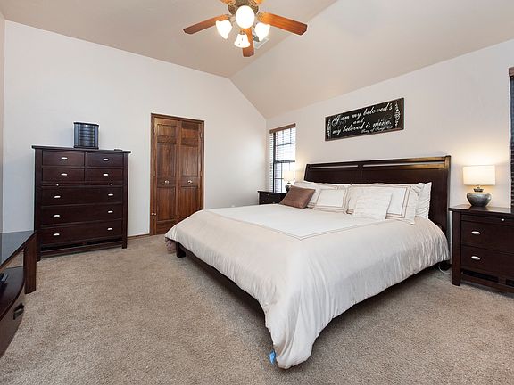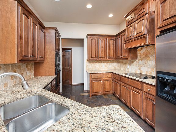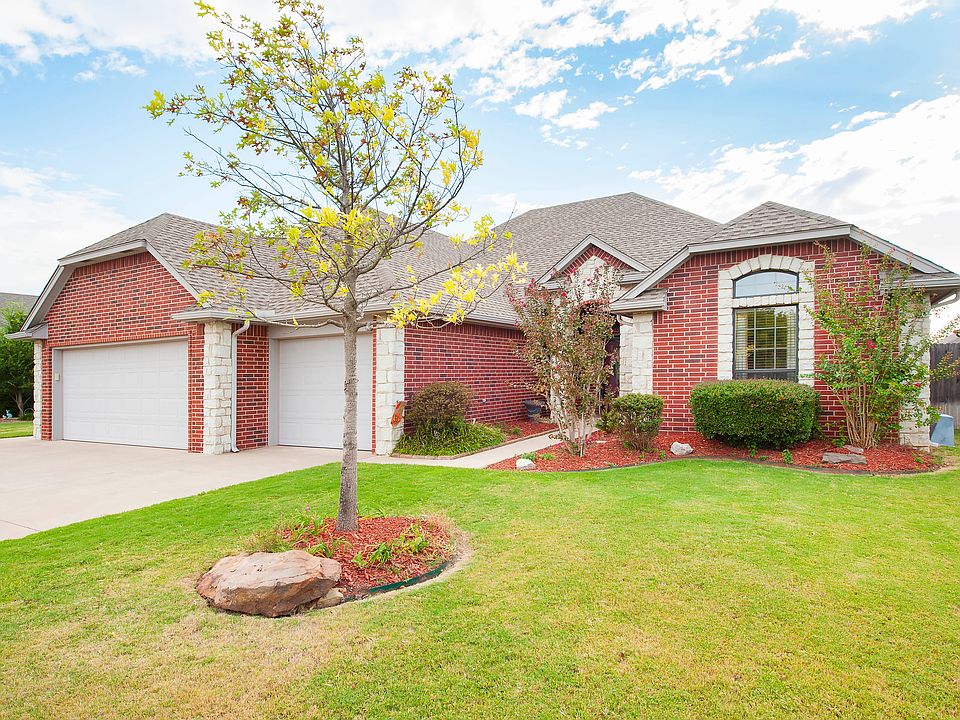 **BRAND NEW** Granite Counter Tops & Travertine Backsplash in Kitchen. Lots of Cabinetry, Pantry, Breakfast Bar, Sep Dining & Open to Living. Beautiful Slate Tile Flooring at Entry & Formal Dining/Living Rm. Dining W/Wood Chair Guard. High Ceilings W/Wood Beam Accents in Living, Ceiling Fan & Gas Fireplace. Master Bedrm is Very Large W/Ceiling Fan & Recently Remodeled Bath/Suite. Double French Doors Into Bathrm W/Jetted Tub, New Faucet Hardware, New Tile, Double Solid Surface Vanities W/Middle Dressing Table. Master Shower is Fully Tiled W/Builtin Soap/Shampoo Ledge & Pebble Rocked Bottom. Nice Walkin Closet W/Built In Shelving. Utility Rm W/New Granite Counters is off the Garage W/Extra Counter & Storage Space. Secondary Bedrms w/Ceiling Fans & Nice Sized Closets. Hallway Bath is HUGE W/Double Vanities & Tub/Shower Combo. Fresh Paint Throughout House. 2 Inch Wood Blinds. Nice Sized Covered Patio/Full Privacy Fence. Storm Shelter. Neighborhood W/Private Entrance to Deer Creek Elem.