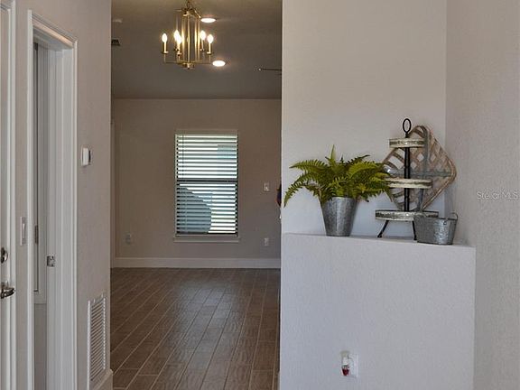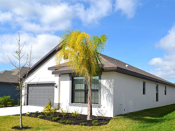 Why wait when this 2022 model is move in ready! This 3-bedroom 2-bathroom home features ceramic tile throughout, white shaker cabinets a large breakfast bar with wine chiller. Large open concept living space with a master suite on one end and 2 additional bedrooms and bathrooms on the other end. Entertain on the lanai with room for grilling or enjoy the new stainless whirlpool appliances in the spacious kitchen. Enough room for vehicles or toys with a 2-car garage. Outdoors amenities include a clubhouse with a heated pool, playground, half basketball court and pickleball court. Aviary at Rutland Ranch is noted for its naturistic views and conservation areas.