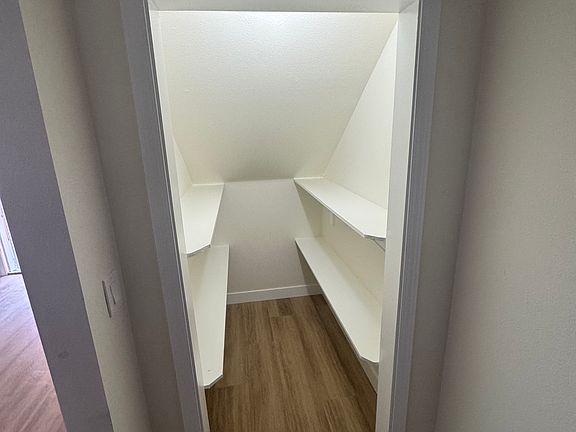 Quartz counters, subway tile backsplash, white shaker cabinets & a walk-in pantry
