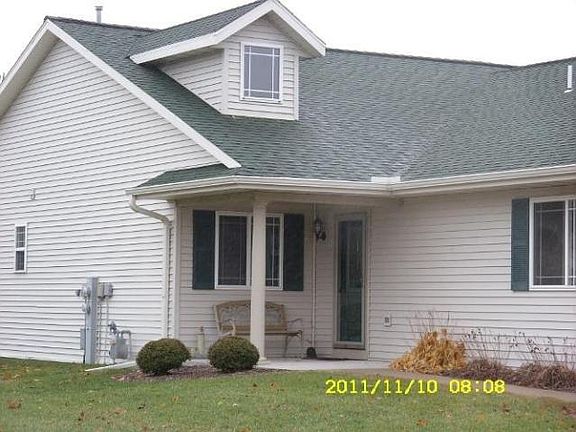 Newer condo with 2 bedrooms and baths, gas fireplace, skylights, patio and 2 car attached garage. Kitchen open to the dining room and living room so you and guests can visit, there is also a pantry for extra storage. There is a first floor laundry, no need for running up and down steps. Close to a city park and the river.