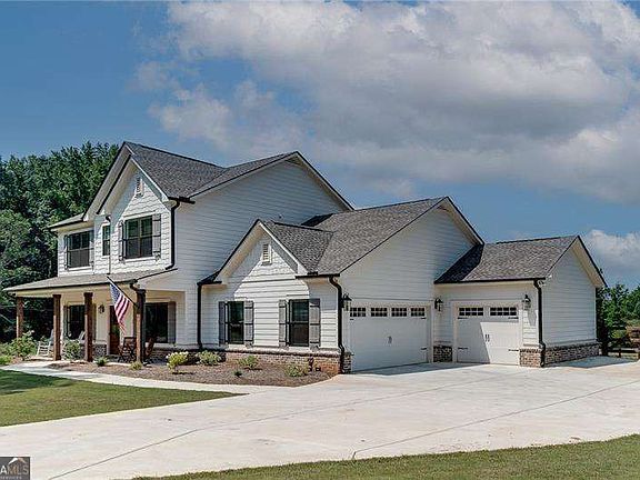 Welcome to your modern farmhouse retreat! Built in 2024 by Reliant Homes and set on 2 acres, this nearly new property combines refined design with relaxed country living. A charming rocking-chair front porch and spacious three-car garage open into a light-filled interior featuring wide-plank hardwood floors, detailed trim, and soaring ceilings. The heart of the home is the chef's kitchen, showcasing crisp white and slate cabinetry accented with soft-gold hardware, a quartz island, pot filler, double ovens, and a walk-in pantry. Seamlessly open to the breakfast area and fireside family room, it's perfect for entertaining, keeping homework in sight, or gathering at the end of the day. A separate dining room offers the ideal backdrop for holidays and celebrations. With 4 bedrooms and 3 full baths, the thoughtful floor plan includes a main-level guest suite and a dedicated office. Upstairs, the primary suite features a tray ceiling, walk-in closet, and a spa-style bath with dual vanities, soaking tub, and a glass-enclosed shower. Step outside to your own private retreat: an expansive covered porch with TV wall and grilling area overlooking the fenced backyard-perfect for hosting or savoring Georgia sunsets. Peaceful and private yet only minutes to local conveniences and Lake Varner, this home delivers craftsmanship, space, and serenity all in one.